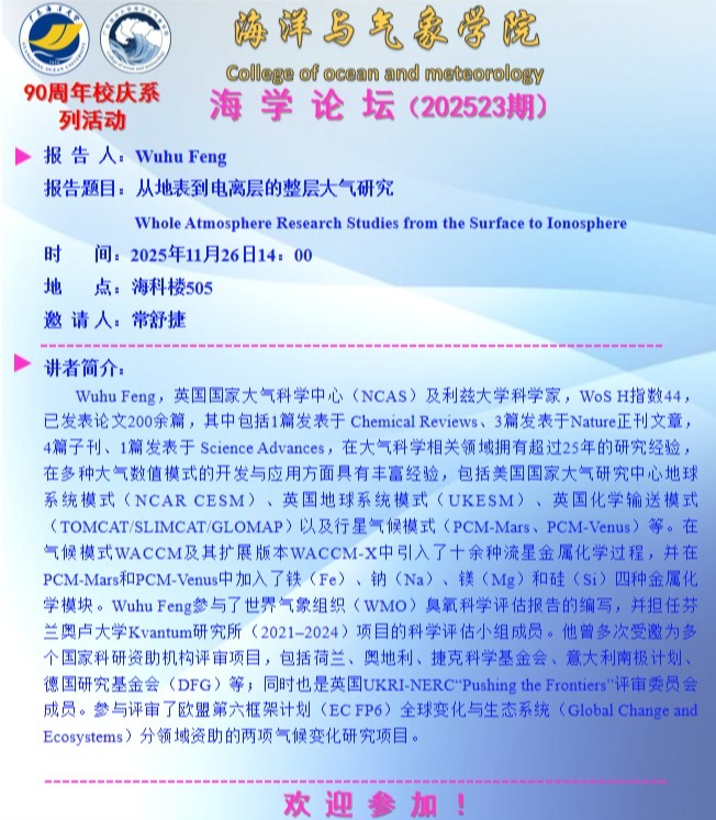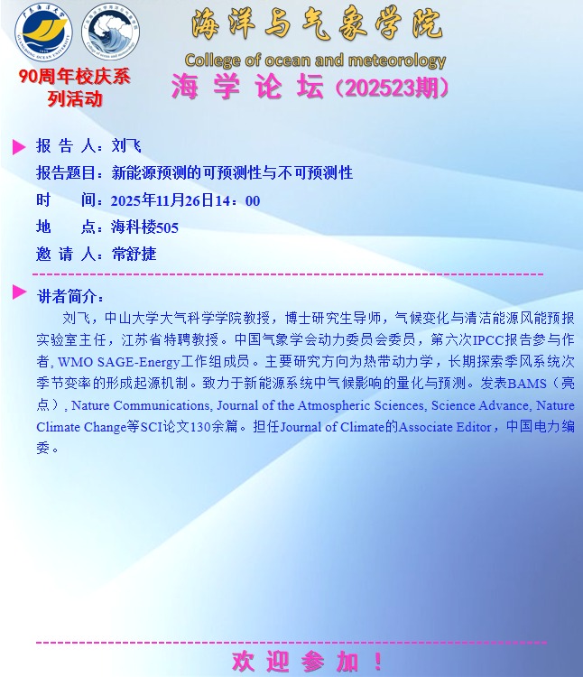 海洋与气象学院“海学论坛”(202523期)
