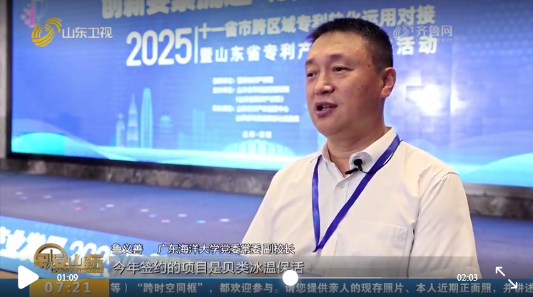 9月4日,学校党委常委、副校长鲁义善率队赴济南参加由国家知识产权局牵头举办的“2025年十一省市跨区域专利转化运用对接暨山东省专利产业化推进活动”。活动中,山东卫视对kaiyun贝类冰温保活签约项目进行了采访报道。该项目有效助力创新成果转化,为企业提质增效提供了科技支撑。