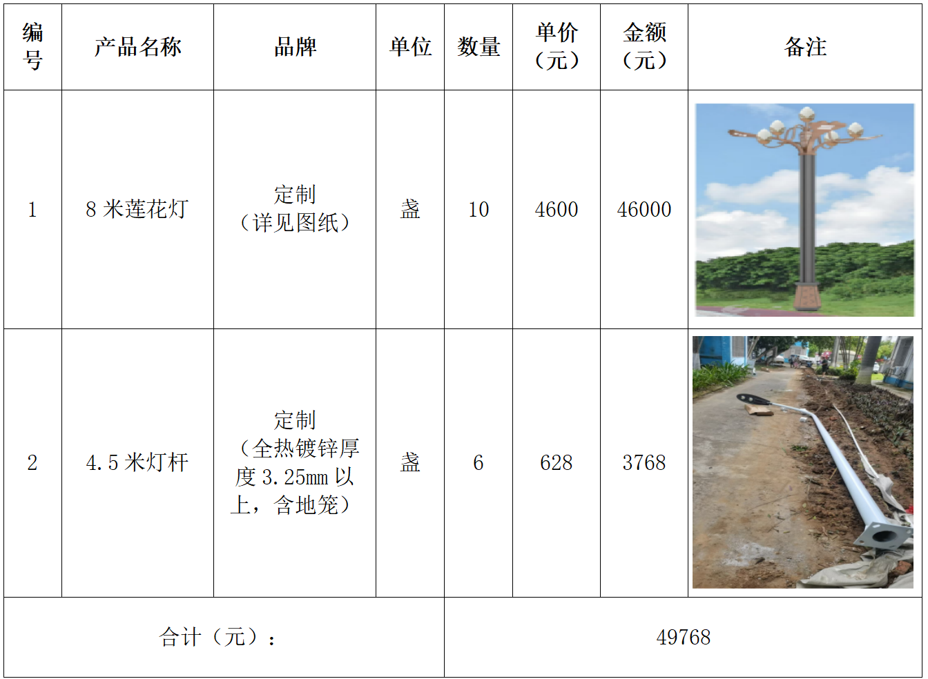 1.高杆莲花灯及灯杆必须为全新合格品。