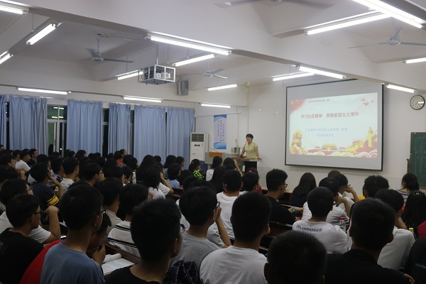 9月27日晚,海洋工程学院党总支书记邓伟在海滨校区电教楼301室,为港口航道与海岸工程专业2020级全体新生共150多人上“思政第一课”。