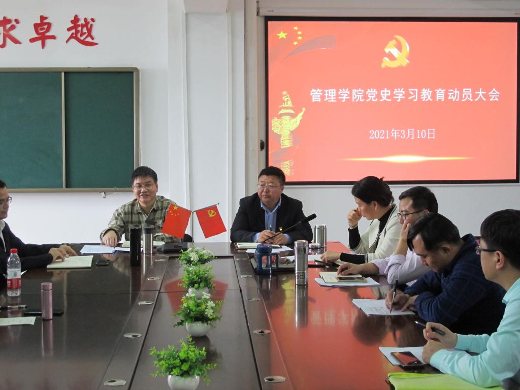 3月10日下午,管理学院党委在湖光校区教学主楼1005室召开党史学习教育动员会,深入学习贯彻习近平总书记在党史学习教育动员大会上的重要讲话精神,贯彻落实中央、省委和学校党委要求,结合学院实际,对学院开展党史学习教育进行动员部署。会议由学院党委副书记吴少文主持,学院领导班子成员及全体党员、干部参会。