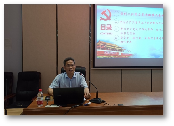 会上,梁朝辉首先带领大家学习了习近平总书记在党史学习教育动员大会上的重要讲话精神和关于学习党史的重要论述,引导师生深刻认识开展党史学习教育的重要意义。随后,他引导大家重温了中国共产党百年历史,用通俗易懂的语言、详实丰富的史料,为师生讲述中国共产党百年奋斗的光辉历程和伟大成就,以及成功推进革命、建设、改革的宝贵经验。最后,他勉励同学们要学党史,强信念,厚植爱党爱国情怀,努力学习,刻苦钻研,练就过硬本领,同时要立足时代使命,承载勇于担当的精神。