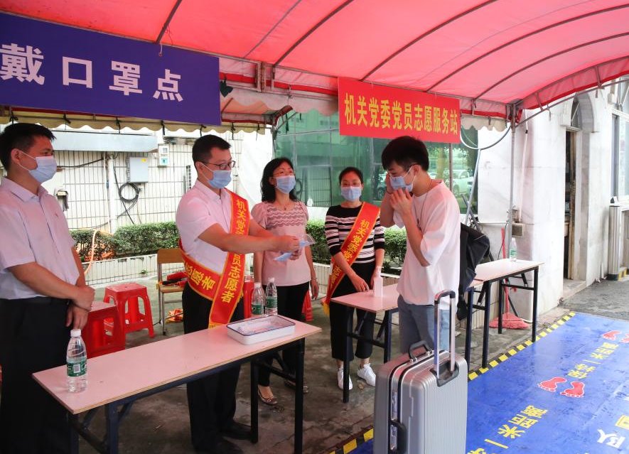 机关党委在每个党支部设立了“党员示范岗”,充分发挥共产党员示范引领作用,对业务能力强、服务态度好的管理岗人员实行挂牌上岗,接受群众监督,树立学习标杆,有效转变机关工作作风,形成管理育人的良好氛围。每学期开学之际,为做好师生返校的疫情防控工作,机关党委都组建党员志愿服务队,前往返校现场开展志愿服务活动。