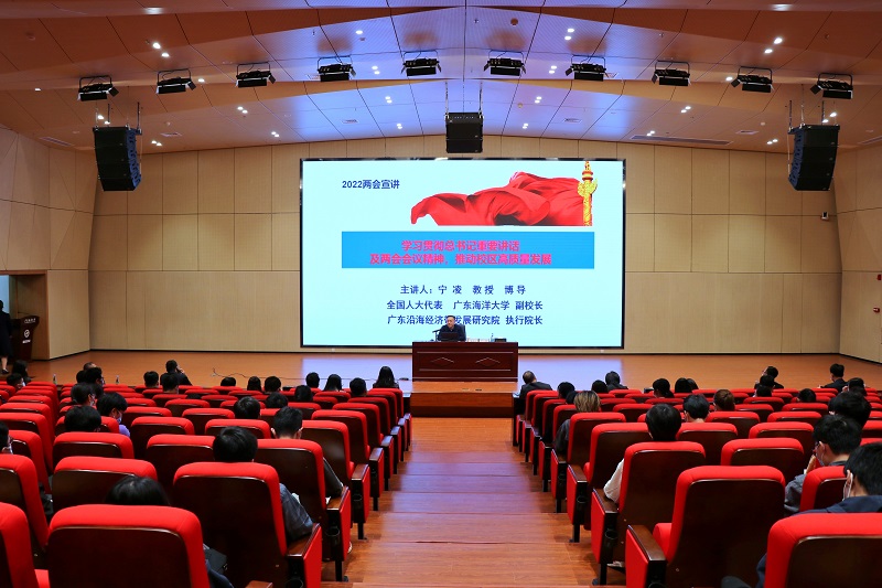 宁凌还与同学们分享了今年自己参加两会履职的情况,并用“奋进新征程,建功新时代”“全程人民民主是中国特色的伟大民主”“代表职业身份有限,代表履职责任无涯”三句话来表达了自己今年参加两会履职的感受。他号召阳江校区的教职工和同学们,要深刻学习领会习近平总书记在全国两会期间重要讲话和全国两会精神,要像珍爱自己的眼睛一样珍爱阳江校区,认真做好自己的本职工作,充分用好“有利条件”,坚决走好“必由之路”,同心同德、齐心协力,以史为鉴、开创未来,积极进取、逐梦前行,共同建设高质量、高水平校区,以优异成绩迎接党的二十大胜利召开。