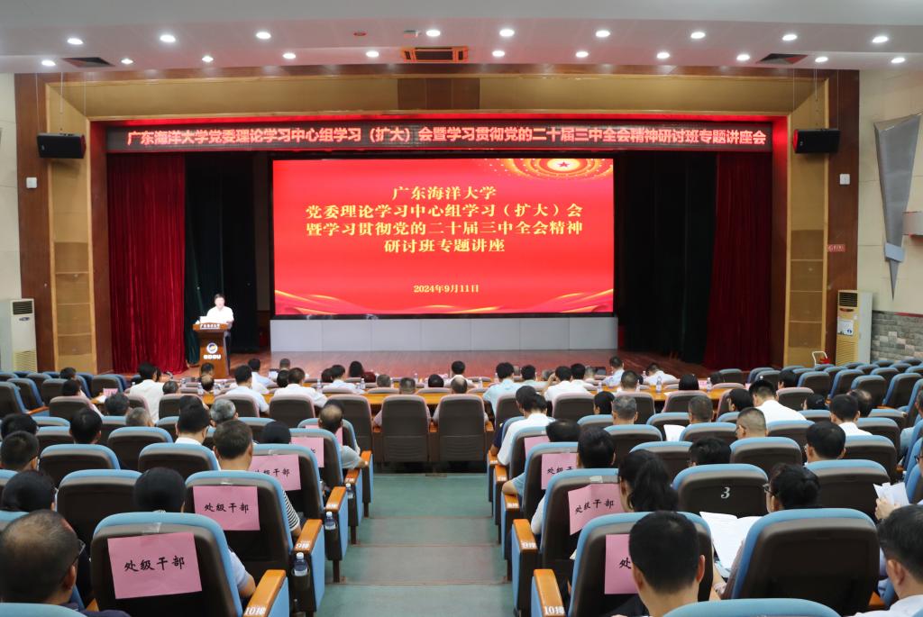 9月11日上午,学校在湖光校区广学楼多功能厅召开党委理论学习中心组学习(扩大)会暨学习贯彻党的二十届三中全会精神研讨班专题讲座,深入学习贯彻习近平总书记在党的二十届三中全会上的重要讲话和全会精神。学校党委书记杨洲主持会议并讲话。学校领导、党委委员,全体中层干部参加学习。