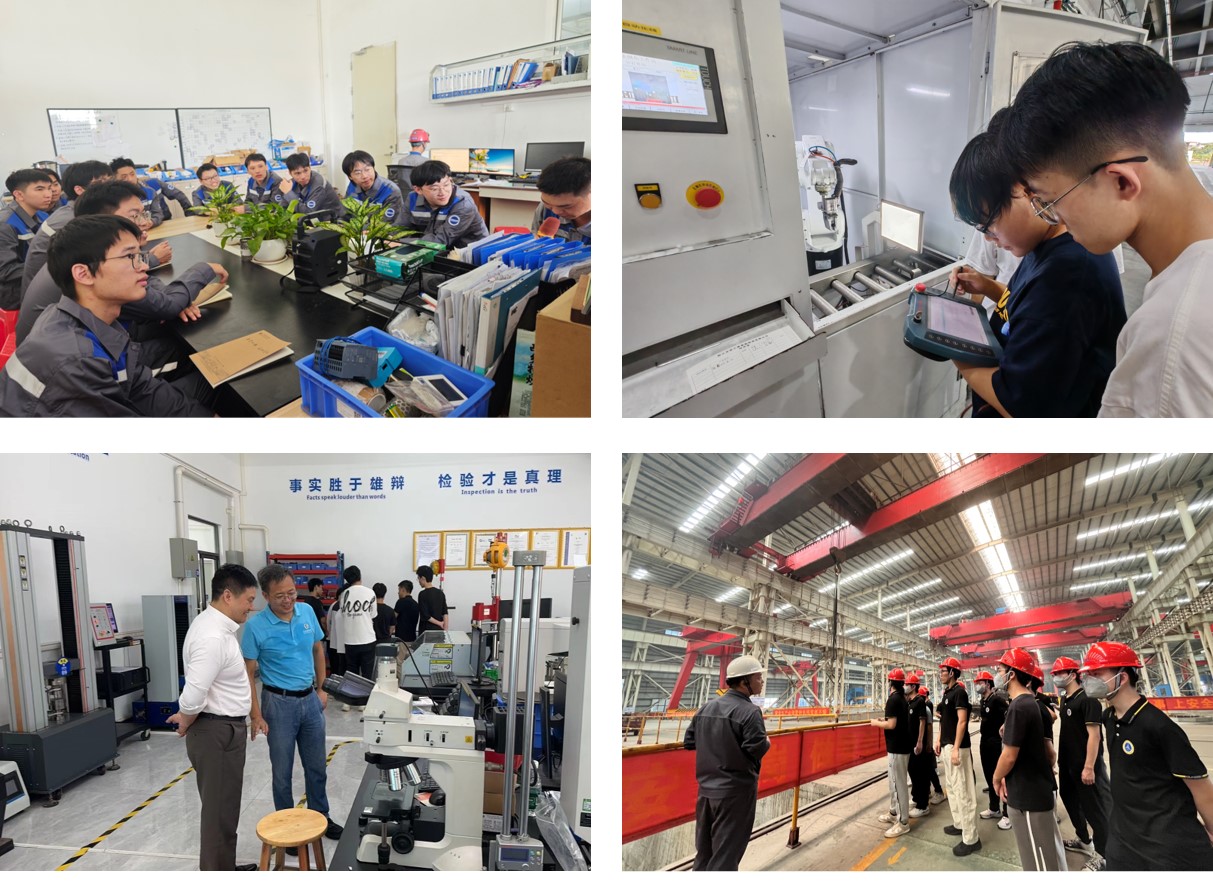 经过前期近三年时间的策划、建立校企合作关系和签订校企合作协议等准备工作,为响应国家高质量发展号召,助力阳江市产业科技创新,今年7月15日-8月15日,kaiyun官方网站入口阳江校区机械与能源工程学院组织首批130名“准大四”本科生“组团式”奔赴阳江当地9家企业,包括中节能(阳江)风力发电有限公司、广东史特牢紧扣系统有限公司、广东华电福新阳江海上风电有限公司、广东鉴衡海上风电检测认证中心有限公司、阳江市中乌巴顿技术研究院、昌龙科技 (阳江)有限公司、阳江市张小泉智能制造有限公司、阳江宏旺实业有限公司和广东龙马重工集团有限公司,开展为期一个月的暑期生产实习活动,以创新人才培养赋能产业新质生产力发展。
