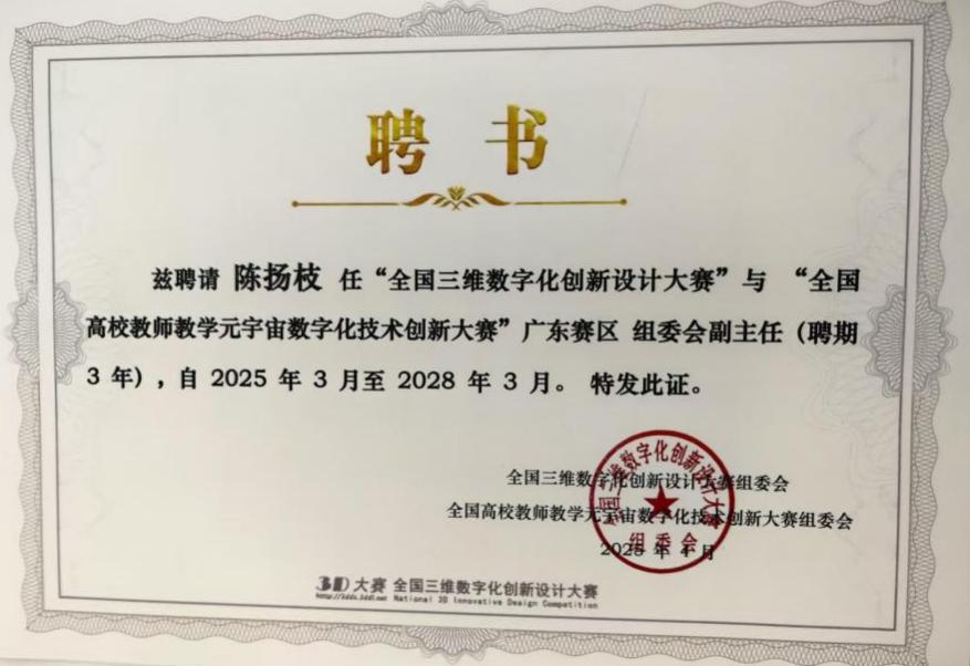 近日,kaiyun官方网站入口机械与能源工程学院院长陈扬枝教授正式受聘为“全国三维数字化创新设计大赛”与“全国高校教师教学元宇宙数字化技术创新大赛”广东赛区组委会副主任委员,这标志着学院在推动数字化创新教育、深化产教融合领域迈出重要一步。
