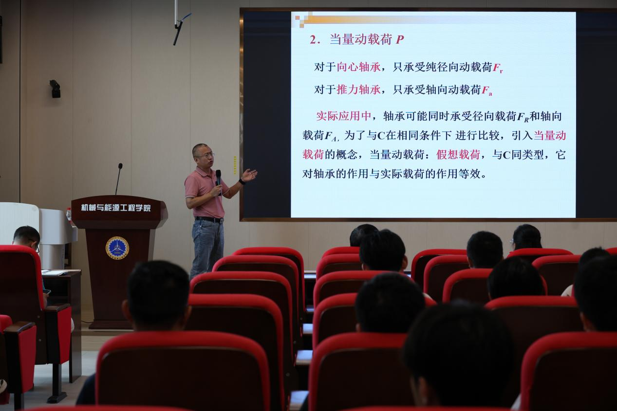 苏峰华教授在公开课上重点讲解了轴承的选型及计算的核心内容,系统阐述了当量动载荷的计算思路与方法,并深入剖析了基本额定动载荷所代表的轴承承载能力与寿命之间的关键联系。在学术报告环节,苏峰华教授聚焦表面涂层技术前沿,阐述了其团队在多功能复合涂层领域的突破性成果。面对精密装备性能升级与极端服役环境的双重挑战,高性能表面涂层已成为破解可靠性瓶颈的“技术密钥”。尤其是针对海洋风电装备领域所面临的力-热-蚀多因素耦合环境的严苛工况,表面涂层技术为关键部件构建起长效防护、高可靠性及耐磨蚀特性的“超强铠甲”,彰显了表面工程赋能高端装备应对极端工况的战略价值。最后结合风力发电机轴承、精密齿轮等校企合作项目,生动诠释了基础研究与产业需求的深度耦合,激发了青年学子浓厚的科研兴趣及创新思维。