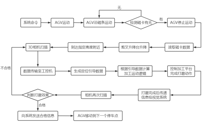 本项目聚焦于大型风电叶片合模过程存在凹陷、飞边等缺陷,大尺寸和变曲率导致人工打磨耗时长且质量不稳定,其打磨工艺的精度和效率低等问题,拟研发一款针对大型风机叶片的智能打磨机器人,定位为一种整合AGV智能小车、柔性定位打磨装置、实时视觉识别缺陷智能检测技术的一体化产品,能适应大型叶片的形状特点和缺陷形式实现其智能化打磨,并保证其绿色、高质和高效,以提升大型风电产业的社会和经济效益。