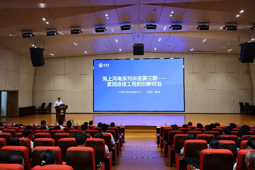 4月24日下午,机械与能源工程学院党建共建暨史特牢海上风电奖学金捐赠和海上风电讲座系列活动在阳江校区海纳楼113报告厅举行,校区党委副书记丁永成、广东史特牢紧扣系统有限公司(以下简称史特牢)总经理熊业军出席并致辞,机械与能源工程学院陈扬枝院长接受捐赠并作总结发言。史特牢党支部书记吴慧、机械与能源工程学院党总支书记周荣伟、校区学生事务部翁江峰、资产财务部王春强、教学科研部白浚宇及机械与能源工程学院师生共200余人参加了活动。