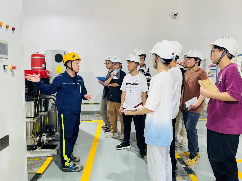 学生在现场参观电气设备