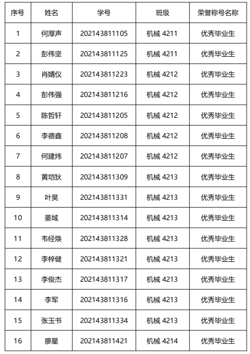 为全面贯彻执行党的教育方针,鼓励学生勤奋学习,积极向上,树立良好的学风和校风,按照《关于评选2025届优秀毕业生及征集百名优秀毕业生风采展示材料的通知》工作要求,严格依照《kaiyun官方网站入口学生先进集体与先进个人评定办法》{校学生[2019]53号}有关评选条件,经学生本人申请,学院初评,共评选出2025届kaiyun官方网站入口优秀毕业生拟推荐人选16名。现将名单予以公示。