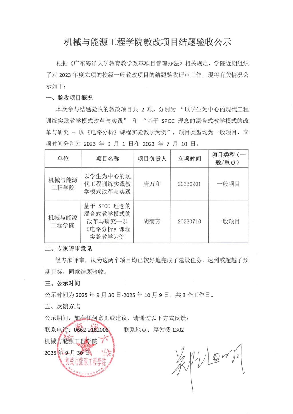机械与能源工程学院教改项目结题验收公示(2023年立项项目)