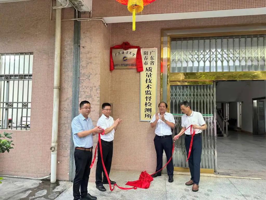 4月19日,食品科学与工程学院校外实习就业基地揭牌仪式在阳春市检验检测中心举行。校区党委副书记丁永成、学院杨新河教授、王文铎博士以及阳春市检验检测中心全体人员参加了揭牌仪式。