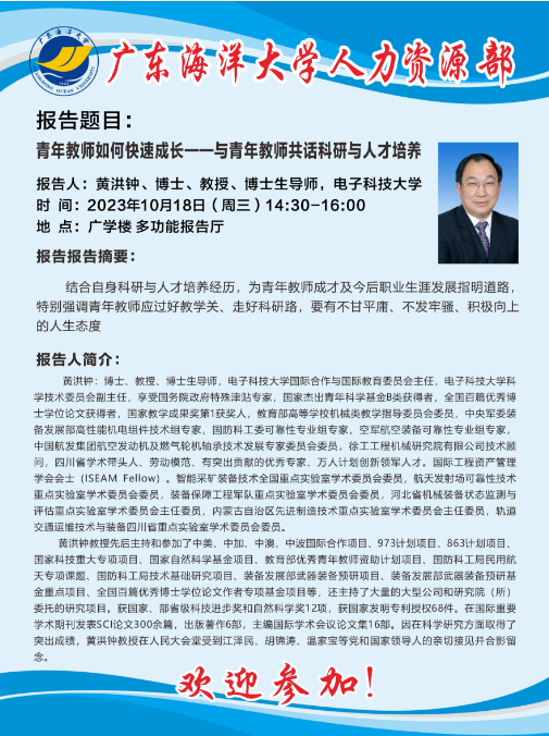 地点:阳江校区海纳楼520(同步直播);湖光校区广学楼多功能报告厅
