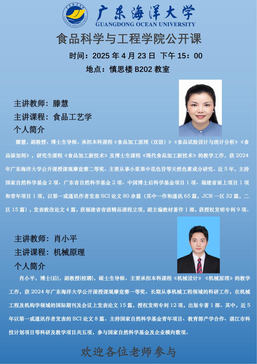 授课人:滕慧、肖小平。