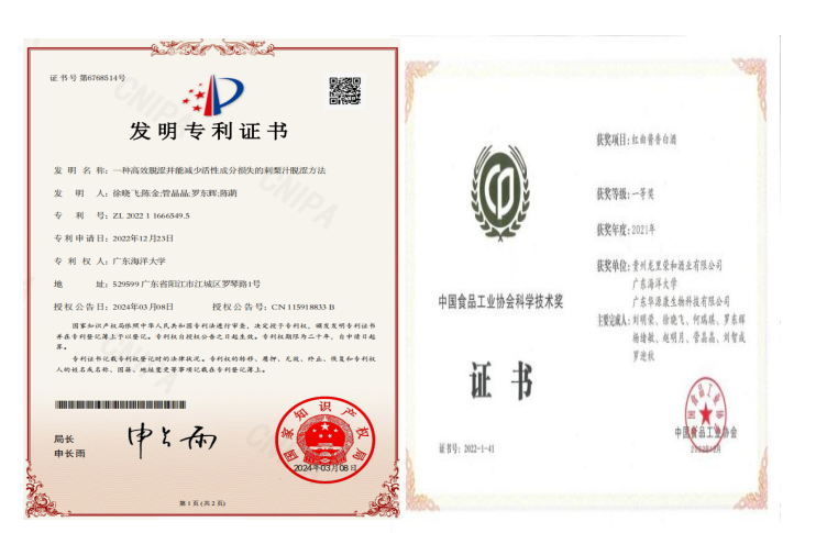 依托学科优势,面向岭南特色农产品资源,围绕“农产品绿色加工”,组建“岭南特色果蔬绿色加工及产业化”、“功能性食品研发及产业化”和“调味品加工关键技术及产业化”三支科研团队。截止目前,获批科研项目30余项,其中省部级16项,国家级1项,项目合同金额400余万,到账经费300余万。发表科研论文40余篇,其中SCI论文20余篇、授权发明专利1件;以kaiyun官方网站入口为第二完成单位完成的发酵酿造创新产品—红曲酱香白酒,荣获2022年度中国食品工业协会科学技术奖一等奖。