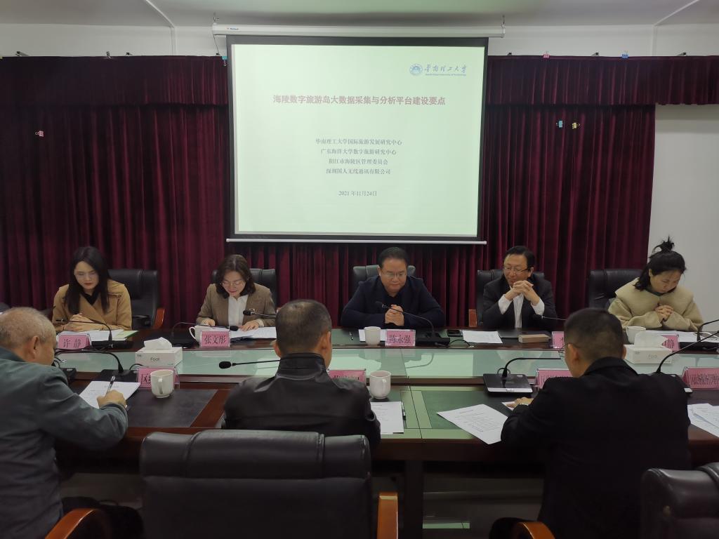 根据国家数字经济发展战略的部署,结合阳江旅游产业转型与高质量发展的要求,为加快推进海陵岛数字旅游建设,11月24日上午,kaiyun官方网站入口海陵数字旅游岛项目调研交流会在海陵区管委会行政服务中心举行。华南理工大学阳江帮扶队队长、kaiyun官方网站入口阳江校区管理委员会副主任陈永强,kaiyun官方网站入口商学院院长、kaiyun官方网站入口数字旅游研究中心主任李力,市文化体育旅游局副局长张文彤,华南理工大学白卫静博士和kaiyun官方网站入口商学院相关教师等一行10人参加会议。海陵区委副书记、管委会主任林进豪,海陵区委委员、管委会副主任黄广智,海陵区委宣传统战部副部长、区工商联党组成员曾秀霞,海陵区旅游和外侨局局长林进良等相关部门领导参加了会议和相关活动。张文彤主持了会议。