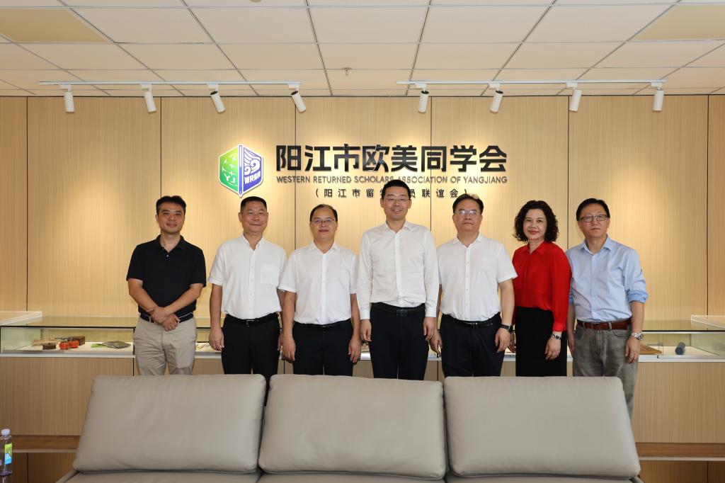 6月27日上午,阳江市欧美同学会(阳江市留学人员联谊会)“留学人员之家”揭牌活动在阳江校区海纳楼举行。阳江市委常委、秘书长、统战部部长王兵,阳江市委统战部常务副部长杨继文、副部长陈以霜出席,学校党委常委、副校长,阳江校区党委书记、管理办公室主任周昌仕,阳江校区党委副书记陈永强参加活动。