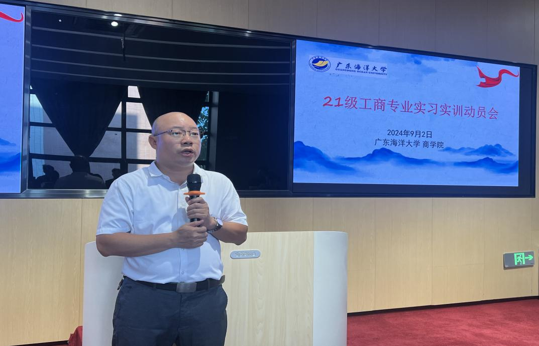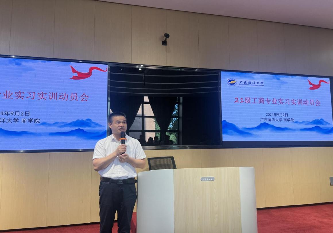 为贯彻学院“专业学习、实验实践与创新创业”一体化的人才培养体系,工商管理专业2021级学生,根据人才培养方案的要求和学院统一部署,将前往阳江市重点国有和民营企业进行为期两周的实训实习。为此,2024年9月2日,商学院在济航楼106报告厅召开2021级工商管理专业实习实训动员会议。学院党总支书记植秀成、院长李力,工商管理系主任周婷及工商管理系部分老师参加会议,会议还特邀实训实习单位代表中国电信阳江分公司人力资源总经理范建循参加,商学院副院长张欢主持动员会。