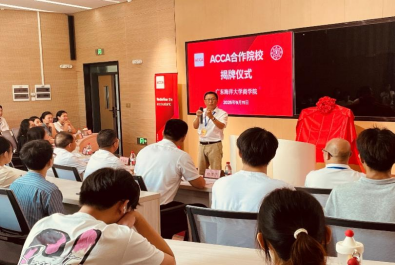 9月11日上午,商学院与ACCA(英国特许公认会计师公会)合作院校揭牌仪式在济航楼举行。ACCA华南区及中国会员关系总监谭颖敏,学校党委常委、副校长周昌仕,阳江校区党委副书记丁永成、教学科研部部长白浚宇,商学院党总支书记植秀成、院长李力、会计学专业及ACCA教学中心全体教师和ACCA创新实验班全体同学出席仪式,共同见证这一推动商学院会计专业国际化发展的重要时刻。揭牌仪式由植秀成主持。