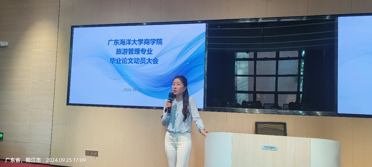 大会由张欢开场,她首先阐明了毕业论文在本科教育中的重要地位。张欢指出,旅游管理专业作为商学院最早开展本科生毕业论文动员大会的专业,充分体现了旅游管理教研室对学生毕业论文的高度重视。她鼓励学生们以认真的态度对待毕业论文,把握这次提升自我、展示学术能力的机会。
