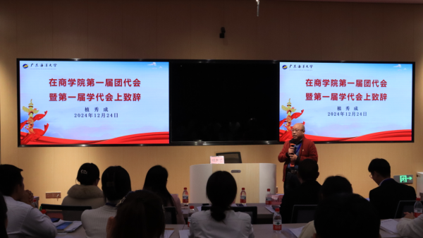 2024年12月24日,商学院第一次团员代表大会暨第一次学生代表大会在阳江校区商学院济航楼106报告厅隆重举行。商学院党总支书记植秀成、副院长张欢、党政办公室主任许静,阳江校区团委书记胡鹤泷等领导和老师,学院辅导员以及45名正式代表出席本次大会。会议由商学院团学工作负责人、辅导员宋时艳主持。