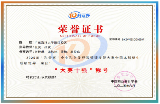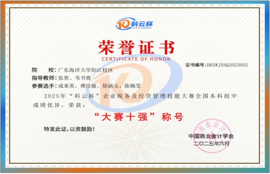 5月24日,由中国商业会计学会主办的2025年“科云杯”全国企业税务及经营管理技能大赛圆满落幕。在本次高手云集的赛事中,kaiyun商学院会计学专业继去年取得“全国十强”后,今年再次成功卫冕“全国十强”团队称号,续写辉煌篇章。