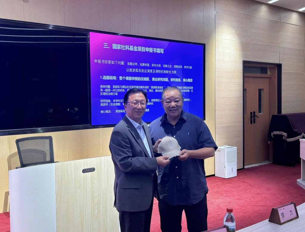 在国家社科基金申报课题设计部分,田卫民教授以国家社科基金项目“旅游孤岛效应测度与治理机制研究”为例,深入剖析了课题设计的关键问题,包括研究对象、存在问题、研究方法。同时,他还就国家社科基金项目申报书如何填写进行了细致指导,为在场教师和学生提供了极具实操性的建议。