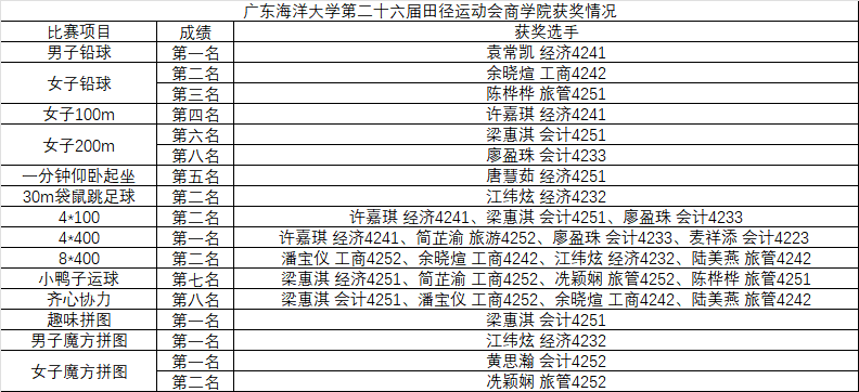 学校运动会商学院获奖情况一览