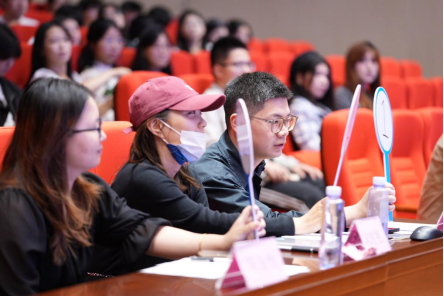 比赛过程中,观众们被选手们的精彩表现深深吸引,掌声雷动,欢呼声此起彼伏。每一次高潮部分的演唱,都能引发全场的共鸣,海纳楼113报告厅内洋溢着欢乐与激情,仿佛一片音乐的海洋。