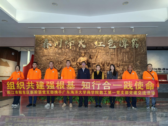 为深入贯彻落实党的二十大精神,凝聚基层党建合力,激活基层党建新动能,3月18日商学院教工第一党支部与阳江市阳东新阶联党支部联合开展以“党建共建夯根基,赓续血脉践使命”为主题的党建交流活动。商学院教工第一党支部书记戚宏亮、组织委员王佳及党员代表刘颖,与阳东新阶联党支部书记王明利、常务理事陈汉龙、苏开贵,理事刘捷宏、陈伟杰,监事伍尚锋及办公室主任黄明月等代表参加了交流活动。双方党员代表聚焦基层党建创新实践,围绕组织建设、资源共享、融合发展等内容展开深入探讨,进一步凝聚了党建引领发展的共识。