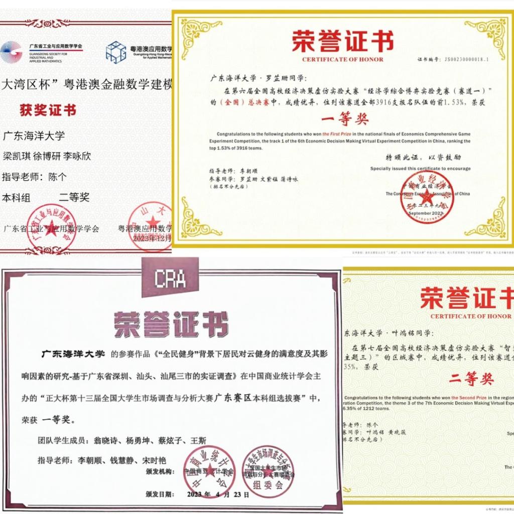 同时,经济系以数字金融实验室为依托,鼓励学生参与竞赛,并获得学生们的积极响应,目前已取得一系列学生奖项如:全国高校经济决策虚仿真实验大赛全国一、二、三等奖;粤港澳金融数学建模二等奖等。