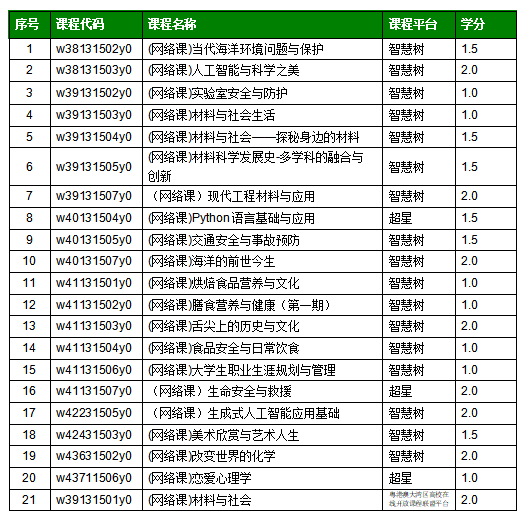 为满足学生对通识教育选修课(公选课)的选课需求,2025-2026学年第一学期学校引进了智慧树、超星尔雅等平台的通识教育在线开放课程资源作为网络通识教育选修课(下称网络公选课)。根据《教育部等五部门关于加强普通高等学校在线开放课程教学管理的若干意见》(教高〔2022〕1 号)等文件精神,结合学校实际,现将本学期网络公选课教学工作有关事项通知如下: