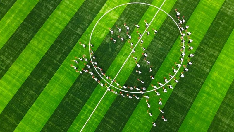 大会结束后,全体党员干部来到校区北门广场,在洪鹏志的带领下,全体党员干部举起右手,重温了入党誓词。随后,全体党员干部先后在校区北门广场、足球场分别摆出“100”和党徽的队形,齐挥党旗,深情齐唱《不忘初心》,深情表达对党和祖国的热爱和感恩。