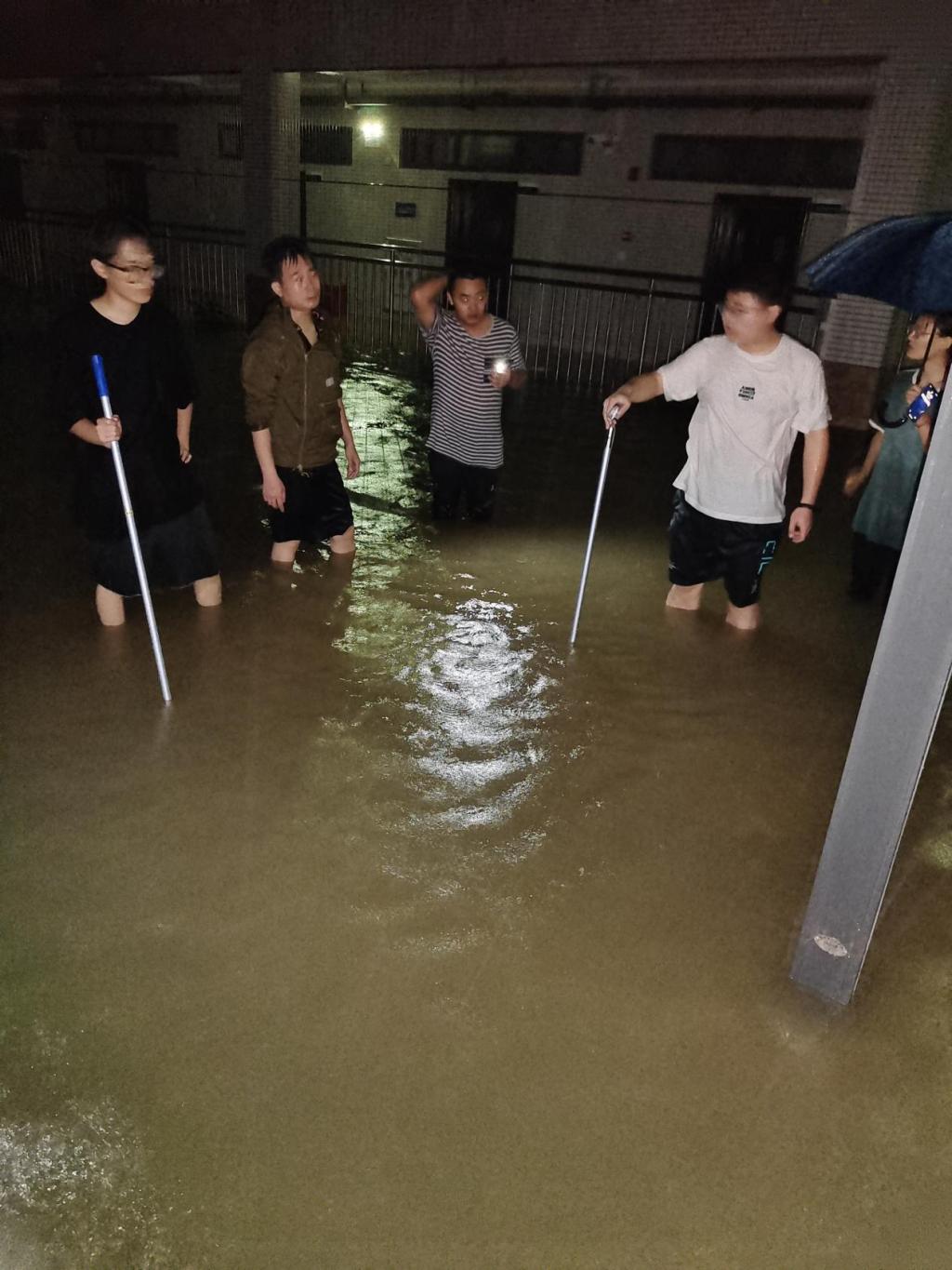 凌晨4时左右,在全体人员的共同努力下,学生公寓、地下室及教学楼积水基本排出,所有排水口出水顺畅,险情解除。