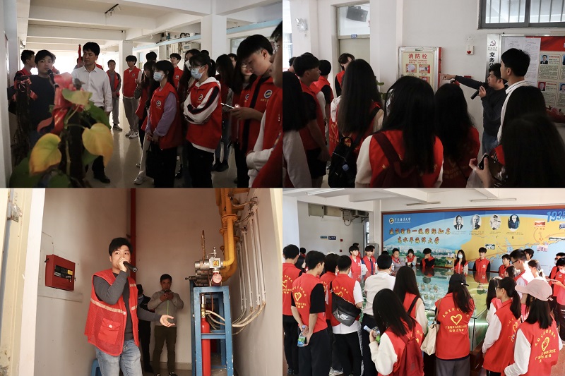 志愿者一行先是到达中歌艺术学院,参观学院的智能消防系统筹消防设施设备,认真听取相关技术人员对系统的演示介绍,学习了智能消防系统的运作原理和应急管理;然后到达行政楼,参观湛江校区的安防消防监控中心,了解了校园的智能监控系统和报警系统;最后,全体人员一起走校园,实地查看了各个区域和主要建筑的监控、报警设备及消防设施。