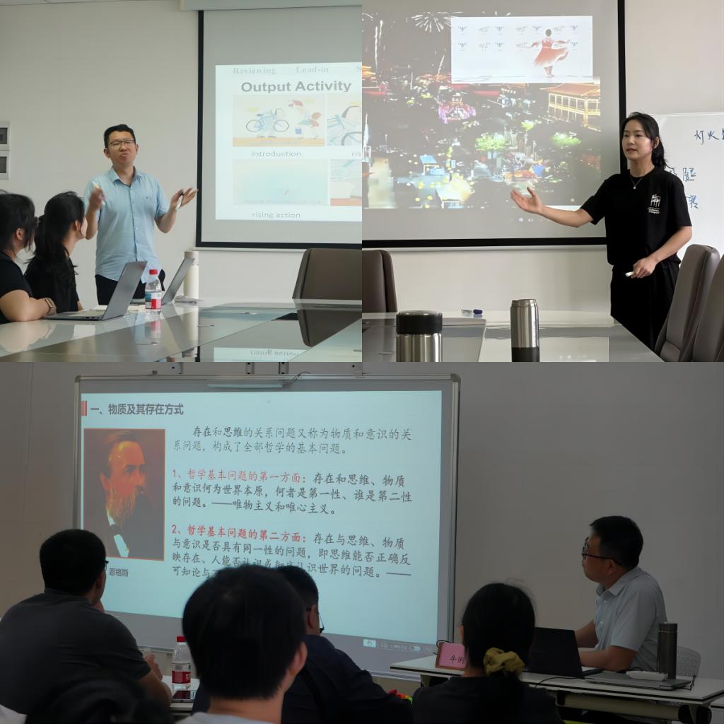 活动共设三场公开课,分别邀请华南理工大学马克思主义学院牛俐智博士、kaiyun人文与教育学院石磊副教授和刘鸿老师担任主讲。华南理工大学牛俐智博士以《马克思主义哲学基本原理》为核心,通过唯物主义与唯心主义对比分析,结合案例研讨阐释马克思物质观的现实意义,提出“科研反哺教学”理念;人文与教育学院石磊副教授在“Swimming through Fear”课程中创新应用AI技术,运用智能词汇系统解析叙事框架,通过短视频导入与生理反应分析强化语言教学互动性;刘鸿老师的《全健排舞:灯火里的中国》将美育与传统舞蹈相结合,通过编排实践《灯火里的中国》,采用分层训练模式提升学生的舞蹈技能和家国情怀认知。