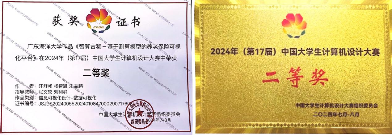 8月18日至21日,2024年(第17届)中国大学生计算机设计大赛全国总决赛(信息可视化设计/计算机音乐创作赛道)在浙江师范大学举办。学院参赛的学生团队与来自全国的1200余名师生参与角逐,最终脱颖而出,作品《智算古稀——基于测算模型的养老保险可视化平台》荣获全国二等奖。