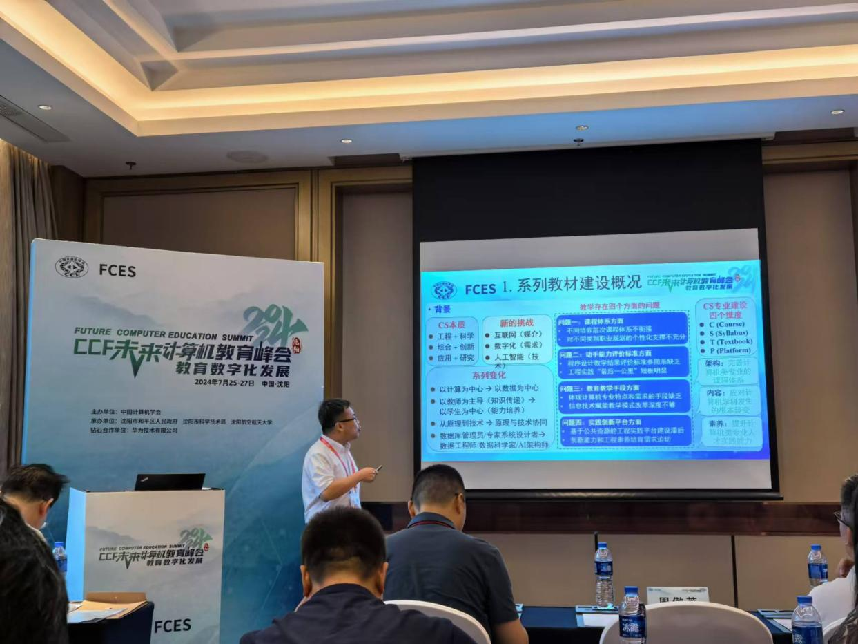 7月25日-27日,中国计算机学会FCES2024在辽宁沈阳举办。与会专家围绕推进计算机教育的数字化转型,携手共创计算机教育的美好未来,深入交流探讨教育数字化及计算机相关课程体系等专题。计算机科学与工程学院赵男男副院长和张晓光教授参加了本次峰会,聆听了大会主题报告和数字教材建设的新机遇与新挑战等部分分论坛报告。此次会议,进一步提升了学院教师对《“十四五”普通高等教育本科国家级规划教材建设实施方案》提出的“以数字教材为引领,建设一批理念先进、规范性强、集成度高、适用性好的示范性新形态教材”的理解,为今后适应新时代教学改革需要,提高教师教学水平起到良好的导向作用。