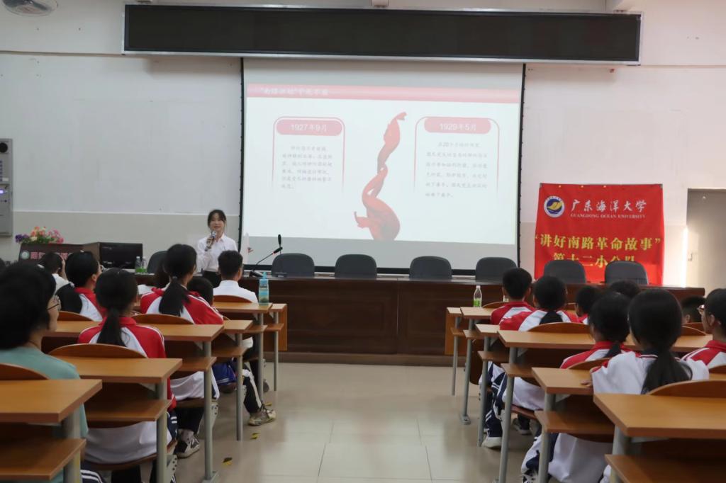 活动中,宣讲员乔圳鑫和冯京艳分别以“阳江农民运动先驱谭作舟”“南路‘江姐’钟竹筠”为题讲述了南路革命的故事。宣讲员吴嘉琪和黄宇珺则分别以“生态绿,海洋蓝,青春红——美丽中国色”和“唱响‘海洋牧歌’,深耕‘蓝色粮仓’”为题向同学们介绍海洋的知识。同学们与宣讲员积极互动,现场气氛活跃。