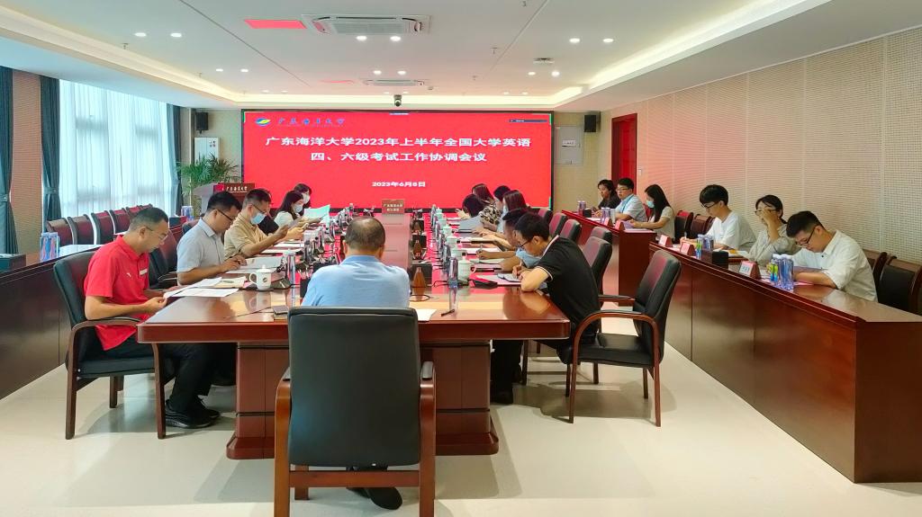 6月8号上午,阳江校区在海纳楼712会议室召开2023年上半年全国大学英语四、六级考试工作协调会议。校区党委副书记、管委会常务副主任周昌仕主持会议。校区党委委员、管委会副主任陈永强,校区党委委员、纪委书记、管委会委员毛琪,校区管委会委员李鹏虹、校区职能部门负责人、教学科研部全体人员、各学院教务员、考务组全体成员出席会议。