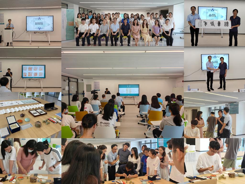 为弘扬中华优秀传统文化,展示篆刻艺术魅力,5月31日,阳江校区图书馆在海纳楼(图书馆)207室创客空间举办“方非一式”大学校园篆刻艺术公益讲座。本次活动特邀阳江市青年篆刻家、阳江市美术馆刘一夫先生为主讲嘉宾,阳江校区管委会委员李鹏虹出席活动并致辞,阳江校区图书馆负责人李中及60余名师生参加。
