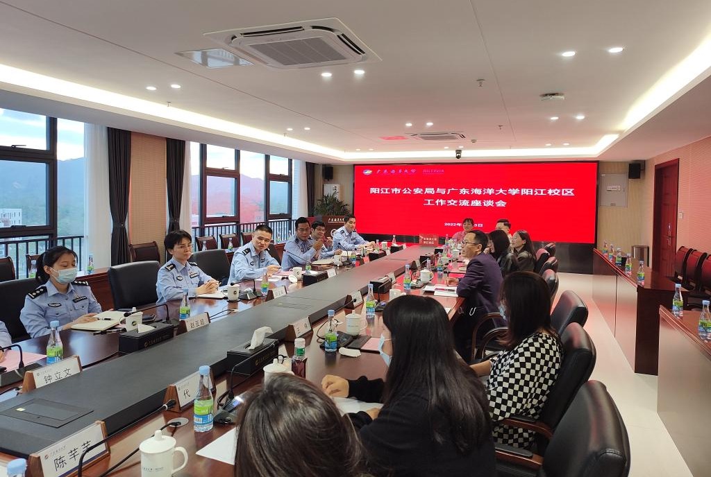 李鹏虹代表校区管委会向阳江市公安局领导一行表示热烈欢迎,对市公安局一直以来对校区建设与发展的用心用力支持和关心表示衷心感谢,并介绍了校区基本情况。刘广辉介绍了阳江市公安局的基本情况。双方在党建、教育培训、青年工作等方面进行了深入交流,并达成了共建共促共融的工作交流融合意向。