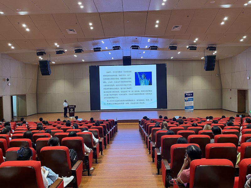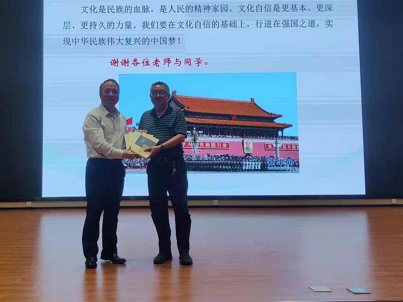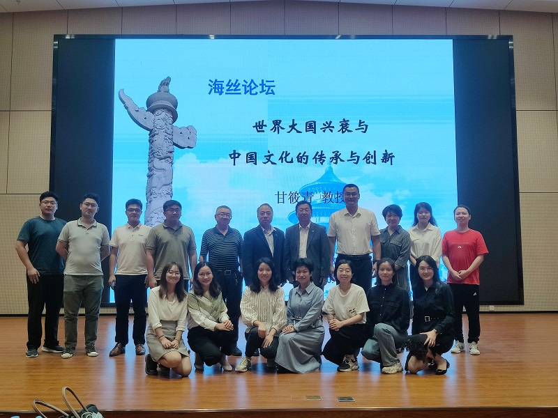 甘筱青教授的主题报告题目是《世界大国兴衰与中国文化的传承与创新》。报告以哲学的思维、历史的镜鉴,对中国未来展开深入求索,主要内容包括:从近现代世界大国的特征及其兴衰史;世界大国成为世界强国的条件及其文化要素,中国强国进程中的文化传承与创新,经典诠释新视野与世界不同文明的对话等,特别是基于世界文明的对话,利用“公理法”在中国文化的诠释方面,甘教授的探索、解读与践行思考给与会师生深刻的印象和十分有益启迪。