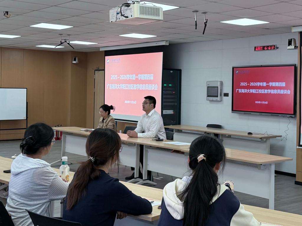 为深入贯彻落实立德树人根本任务,健全“三全育人”工作机制,夯实教学质量保障体系,充分发挥学生在教学治理中的主体作用,推动形成“师生协同、教学相长”的良好生态,教学科研部于11月 26日在阳江校区慎思楼A202室组织召开2025 年学生教学信息员座谈会暨第四届优秀教学信息员表彰会。