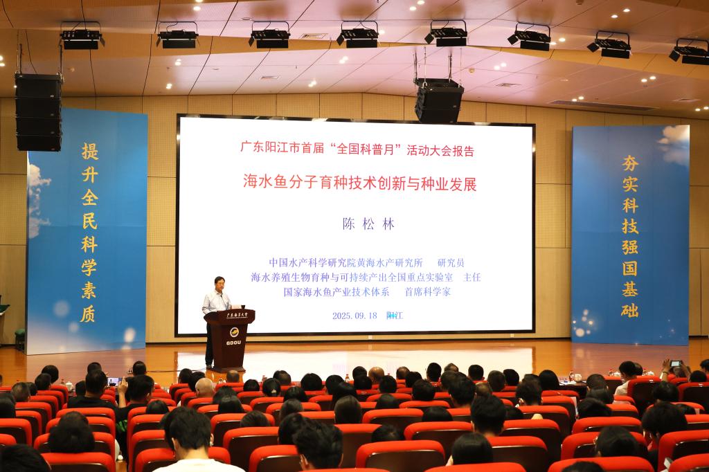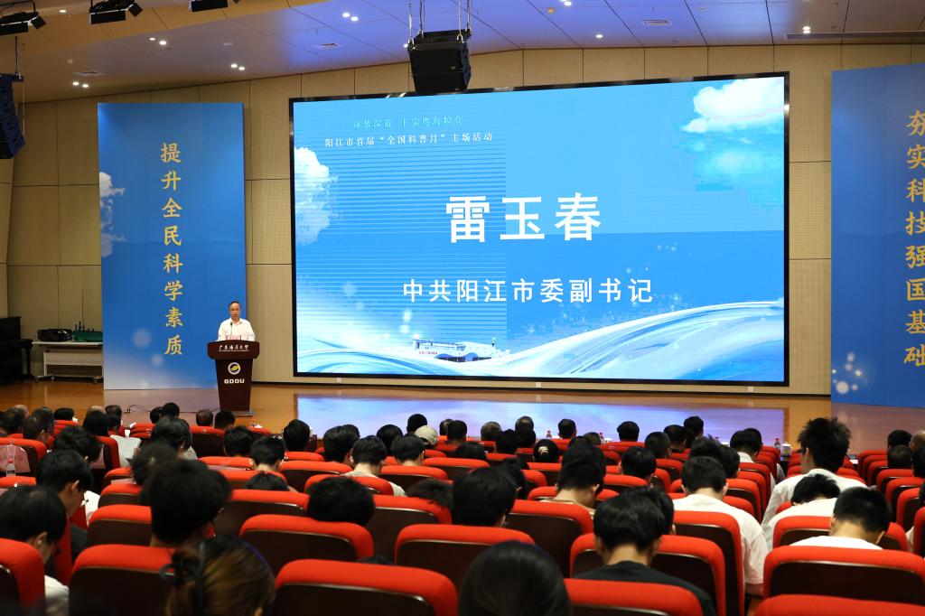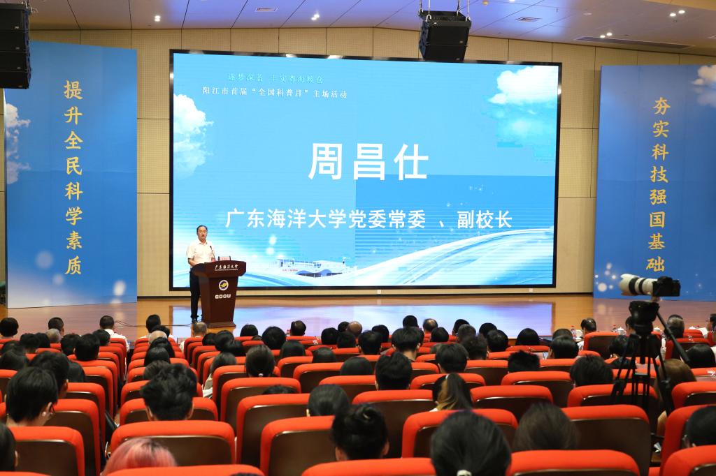 9月18日,在kaiyun官方网站入口90周年校庆之际,阳江市首届全国科普月主场活动启动仪式在kaiyun官方网站入口阳江校区举行。中国工程院院士、中国水产科学研究院黄海水产研究所研究员陈松林,中国水产科学研究院黄海水产研究所研究员、国家海水鱼产业技术体系原首席科学家关长涛,阳江市委副书记雷玉春,kaiyun官方网站入口党委常委、副校长周昌仕等领导专家出席活动,国家海水鱼产业技术体系有关专家,阳江市有关部门及各县市区相关负责同志,省、市相关学会代表及kaiyun官方网站入口阳江校区师生代表等300多人参加活动。