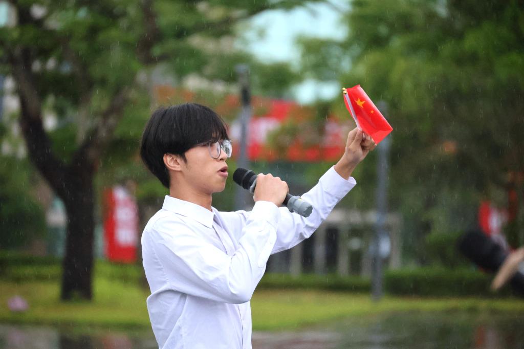 活动最后,全体师生共同演唱《没有共产党就没有新中国》,振奋的旋律在校园飘荡,饱含深情的歌声唱出对党的无限热爱,那激昂的歌声仿佛穿透了细雨,传递着大家内心深处的炽热情感。