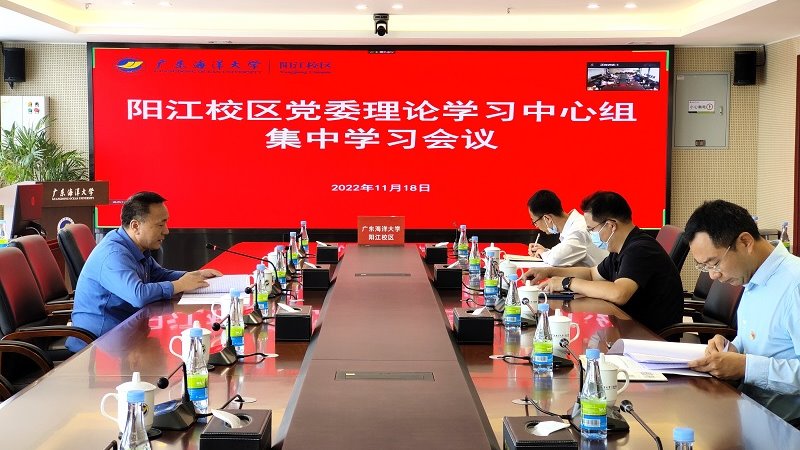 11月18日上午,阳江校区党委理论学习中心组在校区海纳楼712会议室召开会议,专题传达学习贯彻党的二十大精神。学校党委常委、副校长,阳江校区党委书记、管委会主任宁凌主持会议,校区党委理论学习中心组成员参加会议。