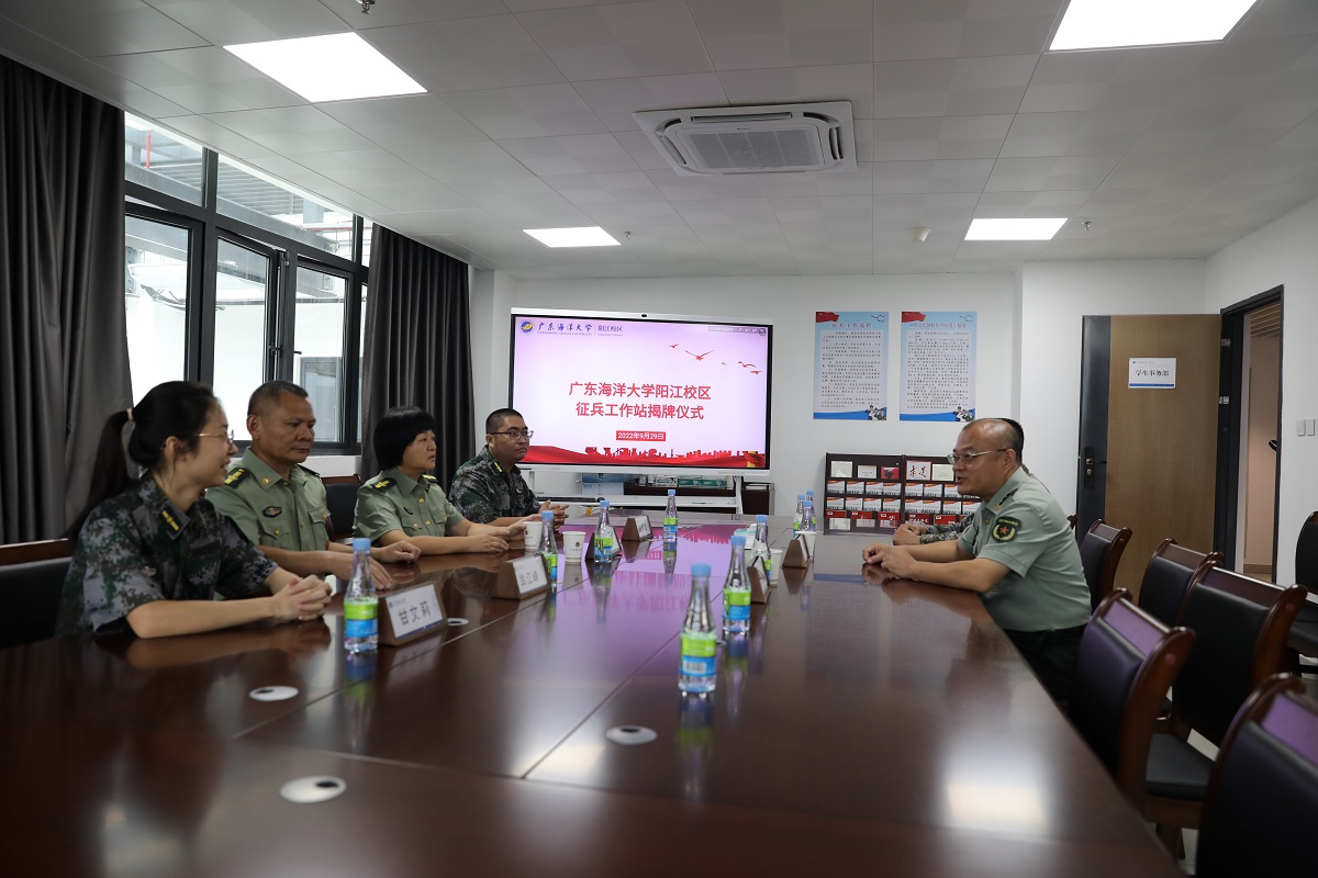 9月29日上午,kaiyun官方网站入口阳江校区征兵工作站揭牌仪式在海纳楼745举行。阳东区委常委、人民武装部上校部长霍永利、学生事务部部长邓朝晖共同为征兵工作站揭牌。阳东区人民武装部相关工作人员和学生事务部全体人员参加会议。